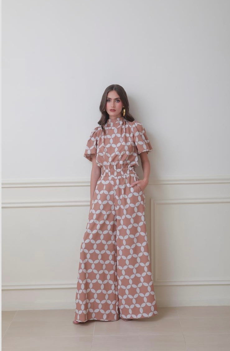 Puffy sleeves and elastic waist jumper.
